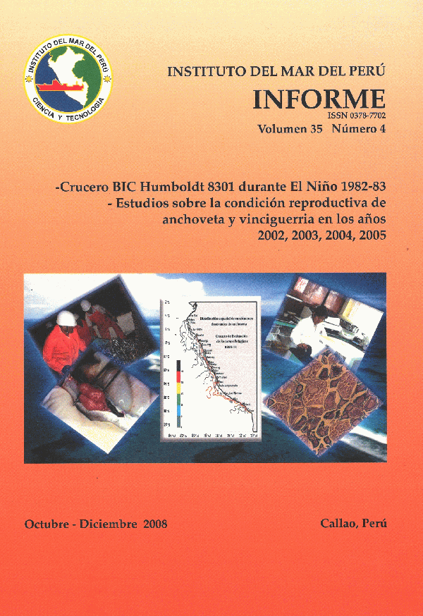 Crucero BIC humboldt 8301 durante el niño 1982-83: Estudios sobre la condición reproductiva de anchoveta y vinciguerria en los años 2002, 2003, 2004, 2005 /