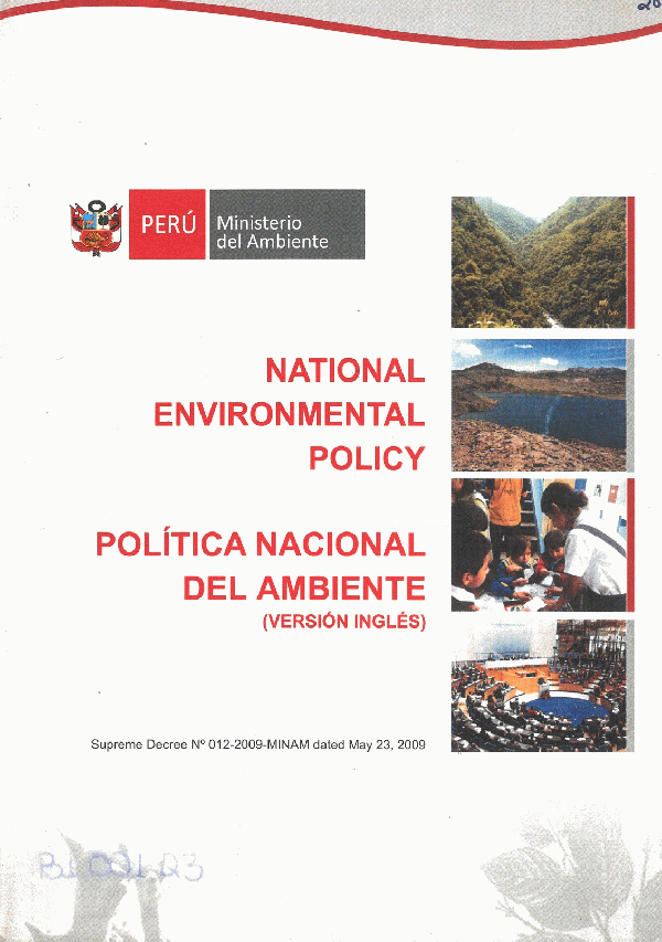 National environmental policy = Política nacional del ambiente /